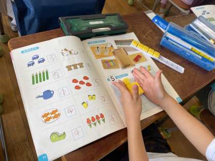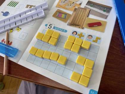 算数の学習では、算数ブロックを使っていろいろな並べ方に挑戦していました。