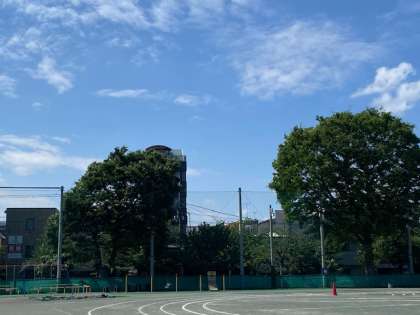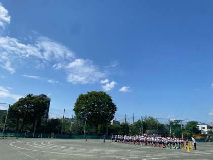 朝会の後、校庭ではさわやかな青空の下、運動会の練習に一生懸命取り組む子どもたちの姿が気持ちよかったです。