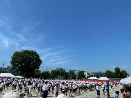 準備運動係の声かけで、準備運動です。体と心の準備が整いました。