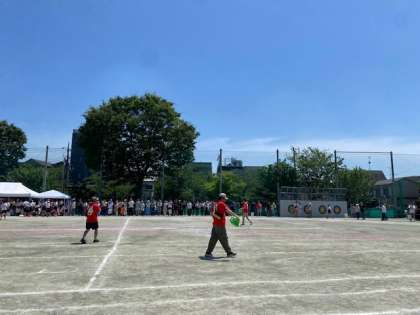 PTAから寄贈していただいたテントの下で。午後の部がもうすぐ始まります。