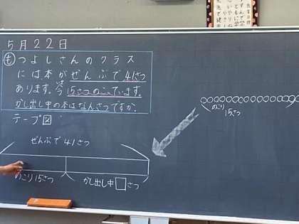 2年生の算数では、テープ図を使って、式のつくり方を考えました。