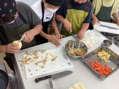5年生は川場移動教室でカレーライスを作ります。今日は事前に練習をしました。
