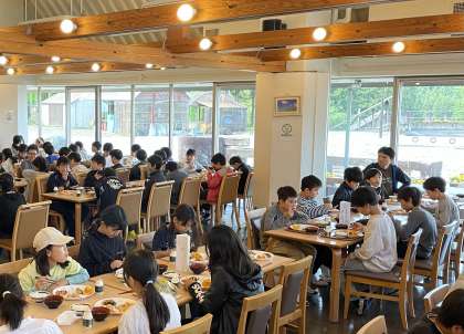 美味しいご飯を食べて、登山に出発です。食事係のみなさんががんばって準備してくれました。美味しい川場のヨーグルトを飲み、ごちそうさまをしました!