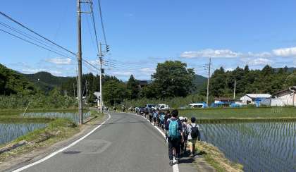 気持ちの良い空気の中、リンゴの樹やブルーベリーの木、棚田のある道や、蔵のある家などを見ながら、川場村の中野地区を歩きました。