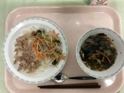 ビビンバ 牛乳 わかめと春雨のスープ