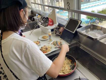 グループで協力しながら野菜を切ったり、麺を茹でたり、炒めたりしました。