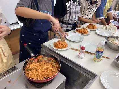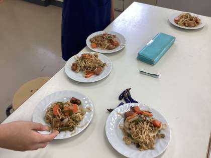 「焼きうどん」を作るグループと「ナポリタン」を作るグループに分かれて調理をしました。