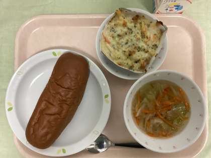 ココアパン 牛乳 マカロニグラタン 野菜スープ