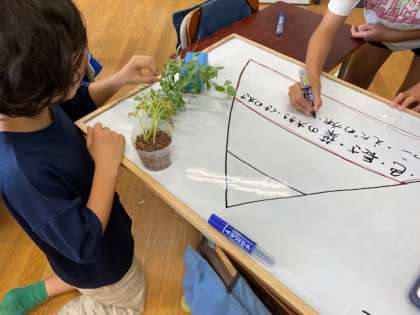 今日は、自分の考えたことをもとにグループで話し合いながらホワイトボードにまとめていきました。