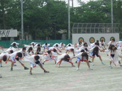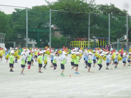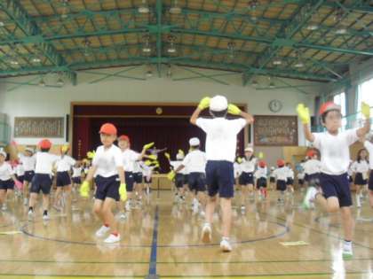 1,2,3年生の演技の練習風景です。4,5,6年生は当日をお楽しみにしてください。