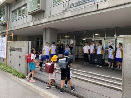 今朝は東深沢中学校の生徒会のみなさんが来校し、東深沢小学校の計画委員会と一緒にあいさつ運動を行いました。登校した子が中学生がいることに気づいた瞬間、思わずにっこりしてあいさつする様子がなんとも微笑ましいです。