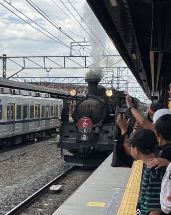 バスはスムースに進み、下今市駅に着きました。SLの展示を見学し、その後SL乗車。歓声をあげて、乗り込み、早速お弁当を美味しくいただきました!