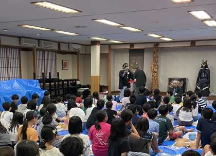 夕食のあと、大広間に集まり、ふくべ細工体験をしました。ユニークなふくべがたくさんできました!