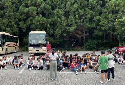 うっすらと晴れたさわやかな朝を迎えました。朝会で、ラジオ体操をし、あらためて林間学園での成長に向け、みんなで確かめました。