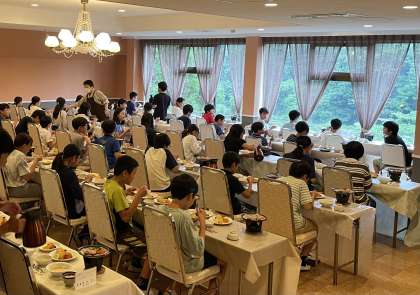 宿でいただく夕食はラスト。エナジーチャージしましょうのいただきますの声かけと共に、美味しくしっかりいただきました。