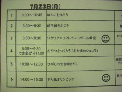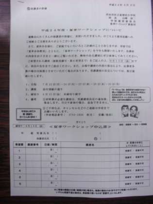 きのう、「夏季ワークショップについて」のプリントを配布しました。(写真参照)
