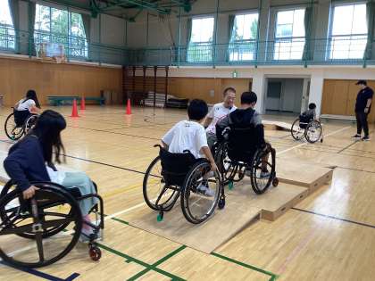 子どもたちは、車椅子に乗って曲がったり、段差を登ったりするのは想像以上に難しいことが分かり、たくさんの力が必要なことに驚いていました。
