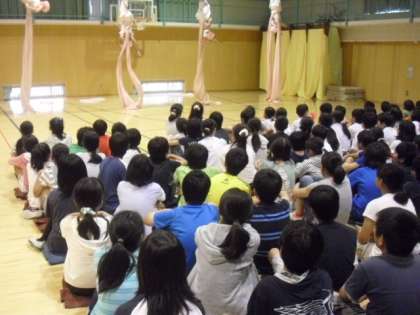 6年生もパフォーマンスを真剣な表情で見ています。体験では6年生はさすが、てっぺんまで昇ってしまう子もいました。最後の写真は今日パフォーマンスを見せてくださったメンバーの皆さんです。ありがとうございました。