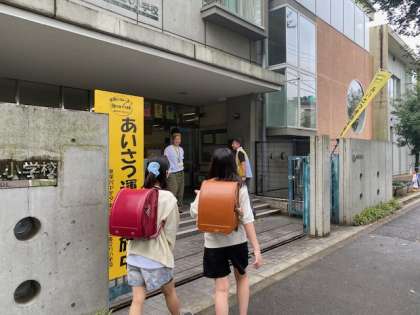 土曜授業日の朝は、みしまの森学舎のあいさつ運動が実施されています。