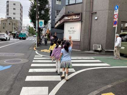 学校に戻ってきた子どもたちを見ると、お店の前を通っただけでは分からなかったことやお店に行ったことがあっても知らなかったことを見たり聞いたりして満足気な様子でした。