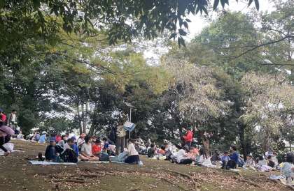 次大夫掘公園を見学して、お弁当の時間になりました。秋色に染まった公園で、美味しくお弁当をいただきました!