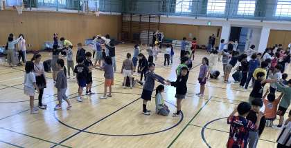その後は学年でレクリエーションを行いました。課題を意識させるようなゲームや、3人組を作るゲームで友達と過ごす時間を楽しみました。