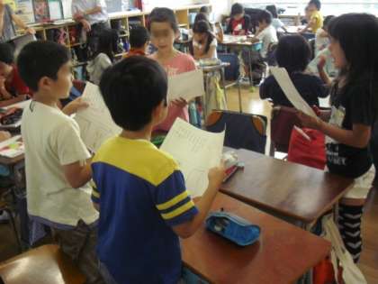 この詩の場面を想像した後、それぞれのグループが相談しながら、強さ・速さ・読む人数等を考え、場面の様子を表すことができるよう工夫しました。どのグループも熱心に練習を進めていました。