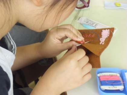 子どもたちは、集中して取り組んでいました。ボタンがつけられた時には、とてもうれしそうな表情を浮かべていました。