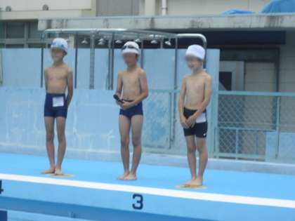 3年生は、一人一人が目標をもって水泳学習に取り組んでいきます。今日は代表として、各クラスから1人ずつ目標を発表しました。