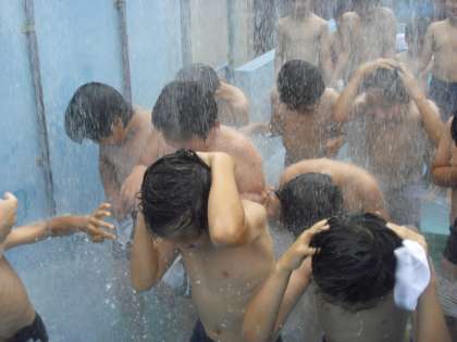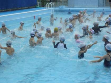 今年の安全を祈って、プールに向かって皆であいさつをしました。