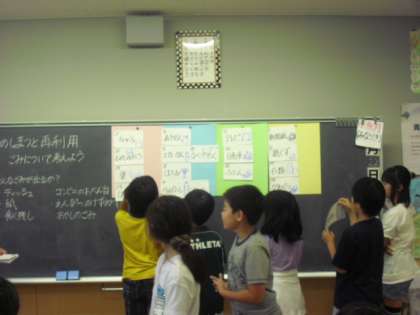 社会科で、ゴミの分別について学びます。普段から出ているゴミですが、いざ分別するとなると簡単ではありません。隣のお友達と協力して学習を進めます。今日学んだことはお家で生かしてほしいです。