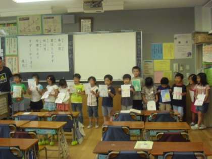 とても楽しそうに音読しています。イメージをカードに描くことも楽しかったです。