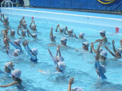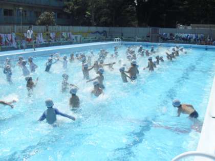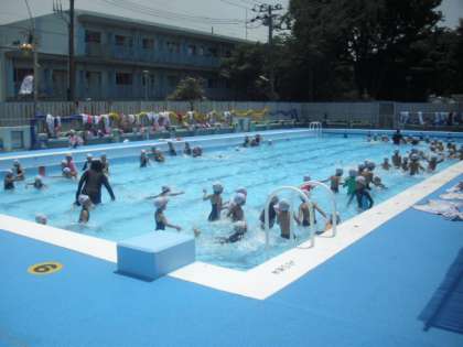 今までの水泳は、ちょっと寒い日が多かったですが、今日は絶好の水泳日和です。3年生も2年生も気持ちよくプールで泳ぎました。