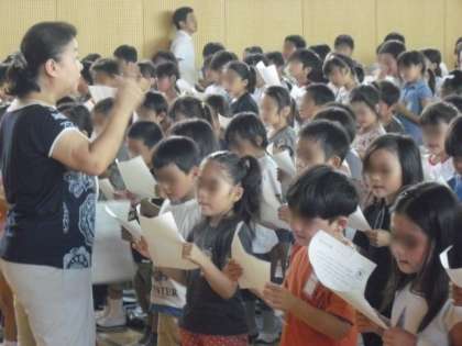 2学期には、みんなで心を合わせてすばらしい2部合唱に仕上げ、感謝の気持ちを学校に伝えたいと思います。(音楽専科 行方)