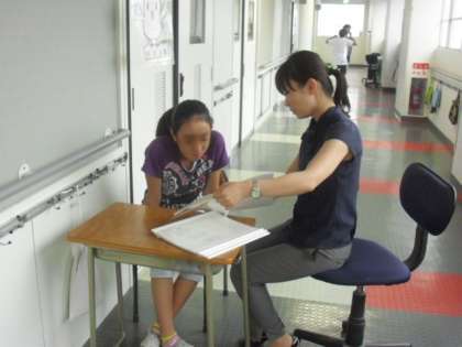 6年生は、通知表を渡す時に、一人一人にしっかり説明をします。どの子も真剣な表情です。