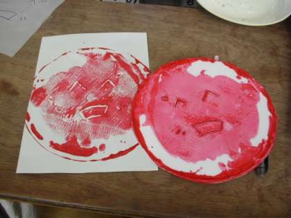 はんこは、絵も文字も反対になるので、トレーシングペーパーを使いトレーにうつしていきました。