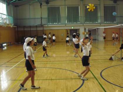 「あと1時間あれば、もっと上手になったのに…」とコーチ魂に火が着いたPTAバレー部のお母さんたち。バレー部の皆さんのおかげで子どもたちは、ソフトバレーボールを楽しむことができました。ありがとうございました。(担当 藤田)