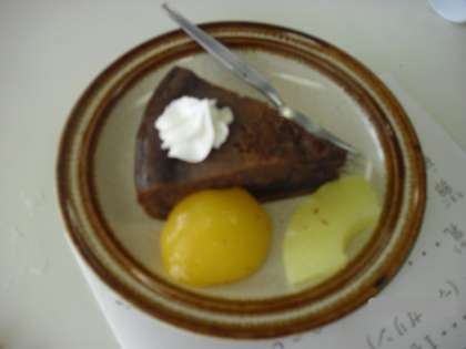 ホイップクリームと果物をそえ、未来のパティシエたちは笑顔で試食しました。(担当 安藤)