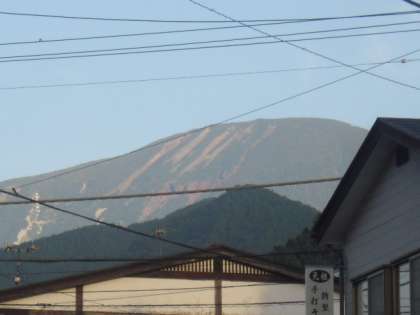 日光林間学園2日目です。天気は晴れ、宿舎前の道路から男体山がきれいに見えます。