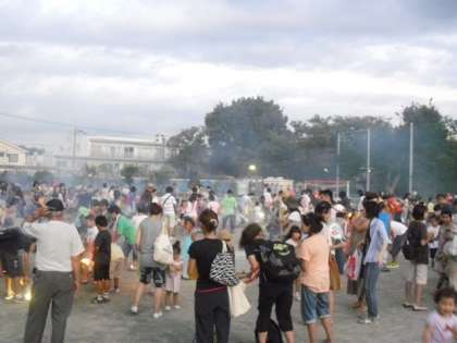 花火大会の最後は噴きだし花火と打ち上げ花火そしてナイアガラの滝です。会場からは大きな拍手がわきあがりました。おやじの会の皆さんが大活躍です。毎年の活躍に感謝です。