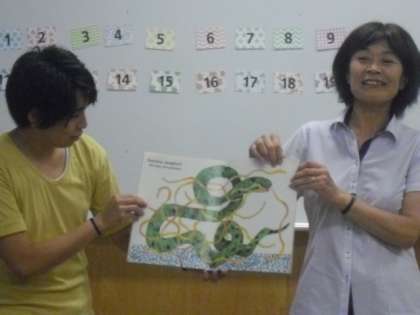 来週から2学期が始まります。先生方は、2学期を迎える前にいろいろな準備をしています。今日の午前中は、「英語研修」です。講師の先生をお招きして模擬授業を行いました。子ども役の先生たちもとても楽しく活動できました。講師の先生ありがとうございました。