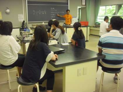 午後は、「教員塾」でした。遠藤先生と志村先生が講師となり、理科実験に取り組みました。紫キャベツの煮汁を試薬として、6種類の水溶液を、酸性・中性・アルカリ性に分ける実験です。