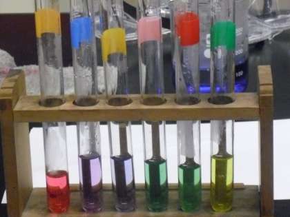 紫キャベツの煮汁を試験管に入れて、透明な水溶液を1・2滴たらすと色が変化します。色の変化で性質を判断します。これは6年生が実験で取り組む予定です。