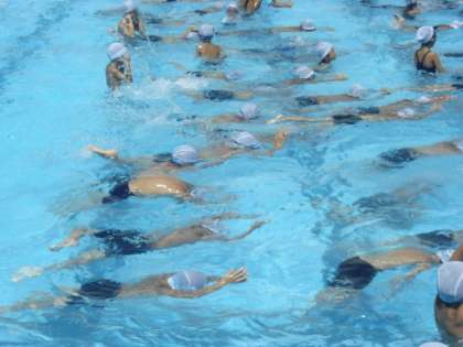 今日で、今年の1年生の水泳指導が最後となりました。音楽に合わせて水の中で踊ったり、宝探しをしたりしました。そして、クラゲ浮きや伏し浮き・背浮きなどもしました。