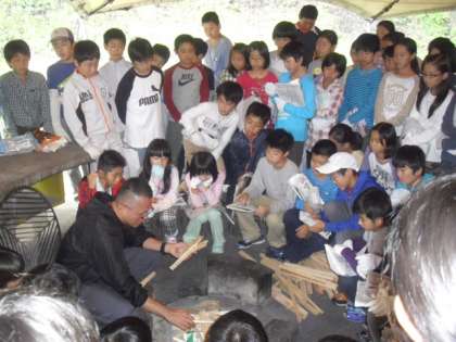 みんなで飯盒炊さんです。やり方を写真屋さんの近藤さんに丁寧に教えてもらい調理しました。