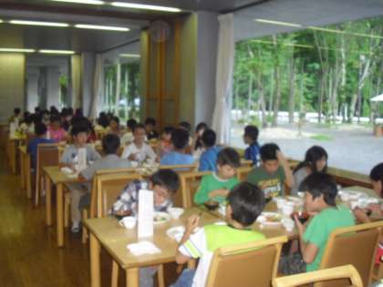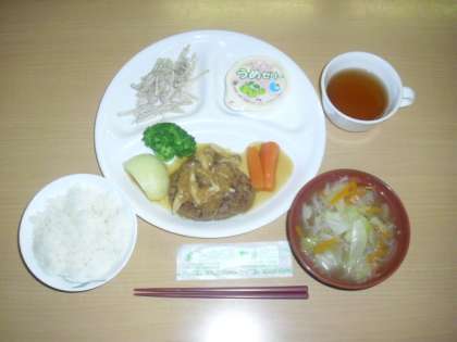 夕食です。ハンバーグも野菜スープもおいしかったです。