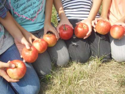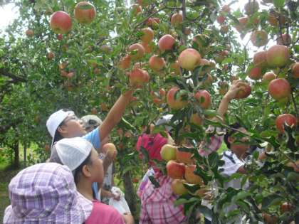 関リンゴ園でリンゴ狩りをしました。関さんから農家のお話を伺いました。