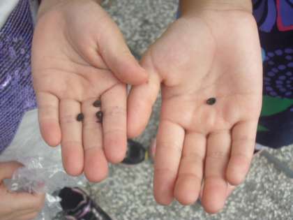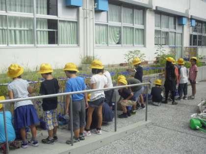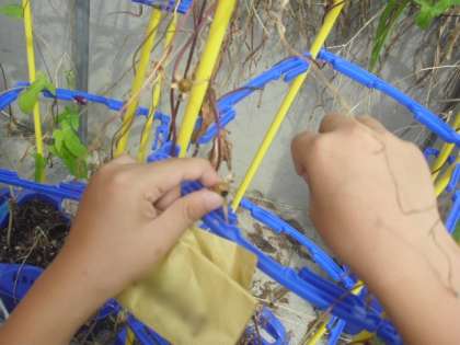 1年生は生活科で育てた朝顔のつるを使ってリース作りをします。今日はそのための準備です。朝顔の種をとってからつるを外します。どんなリースができるか楽しみです。