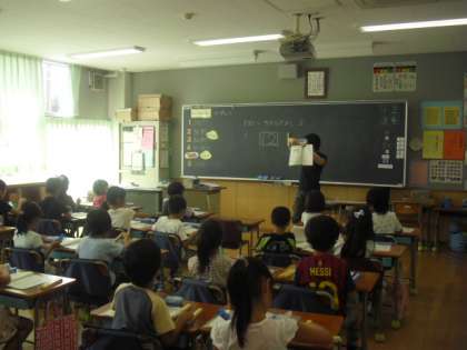 1年生の生活科と算数、4年生の音楽の時間に訪問しました。