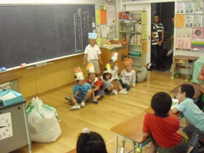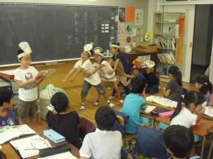まずは、1年1組・2組です。「おおきなかぶ」をグループごとに演技しました。
